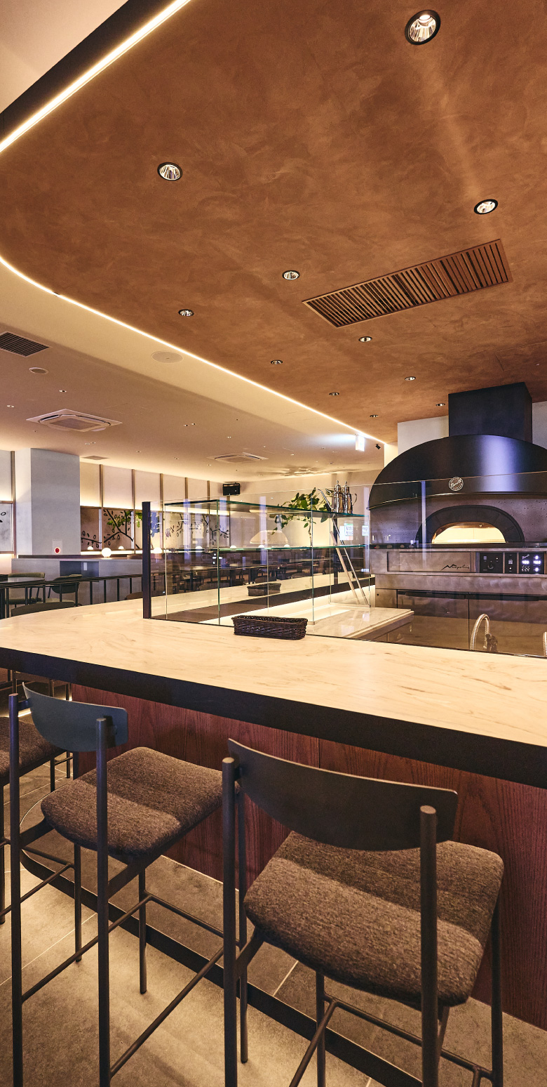 生パスタづくりを間近に眺められ、カウンター席限定のピッツァコースや、モーニングからテイクアウトまで幅広くご利用いただけます。